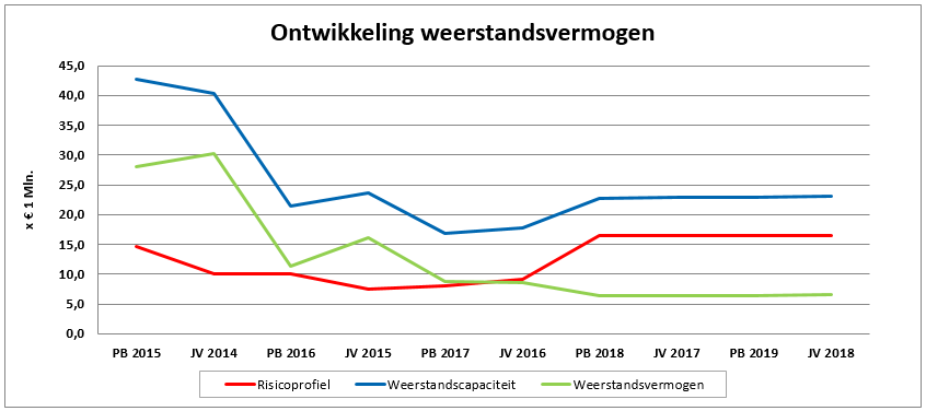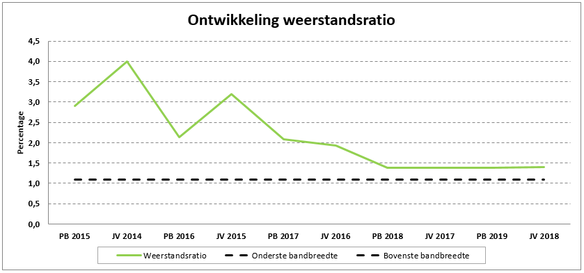 Door de beschikbare weerstandscapaciteit af te zetten tegen de benodigde weerstandscapaciteit (voor het afdekken van risico’s) kan een uitspraak worden gedaan over het weerstandsvermogen. De weerstandsratio bij de Jaarstukken 2018 bedraagt 1,4.
